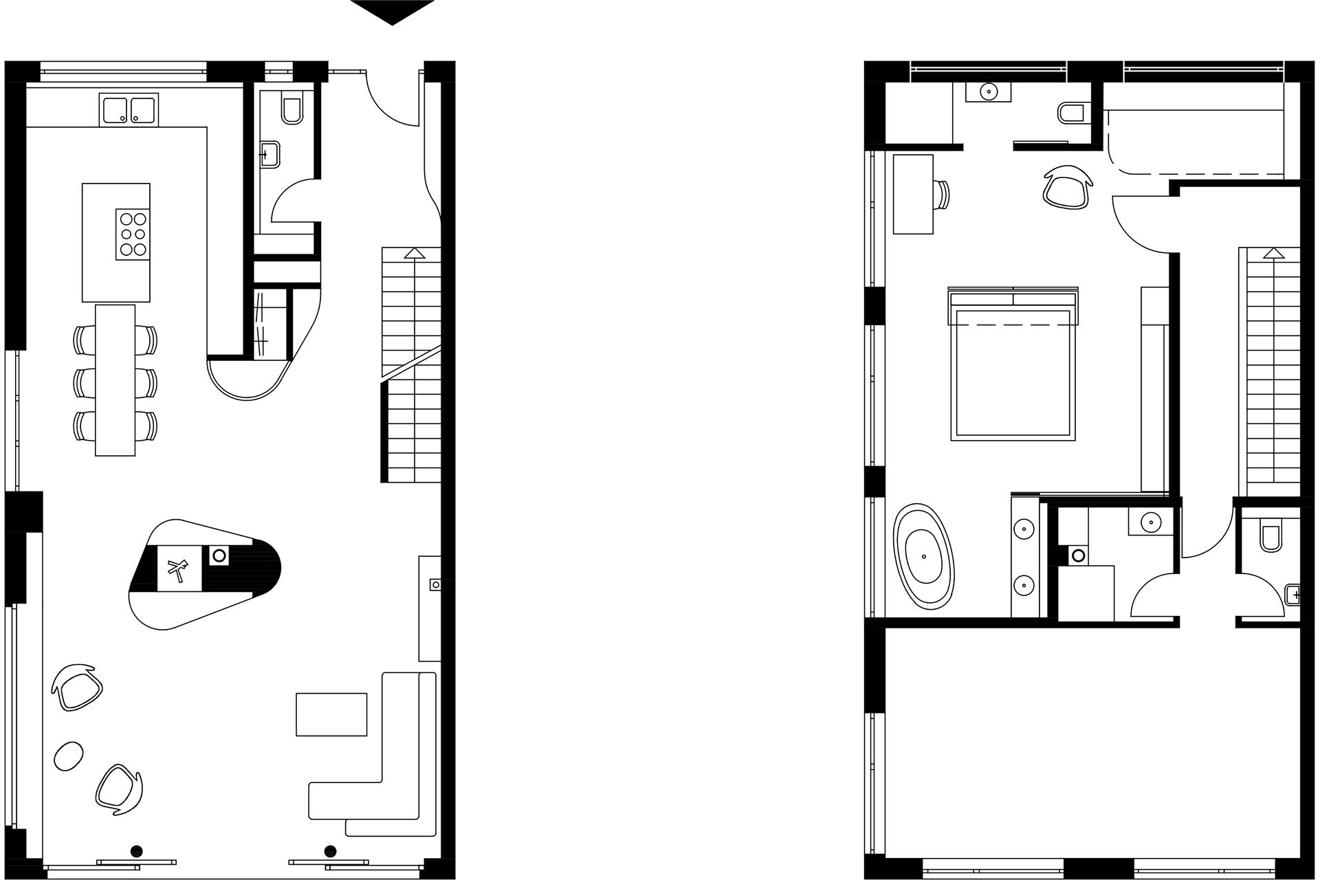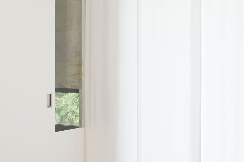 In der oberen Ebene schaffen flexibel hinzuschaltbare Funktionen wechselnde Raumbezüge. Durch den Einsatz von raumhohen, wandintegrierten Schiebewänden lassen sich wahlweise ein offener Grundriss mit fast loftartigem Charakter oder differenzierte Rückzusbereiche erzielen.