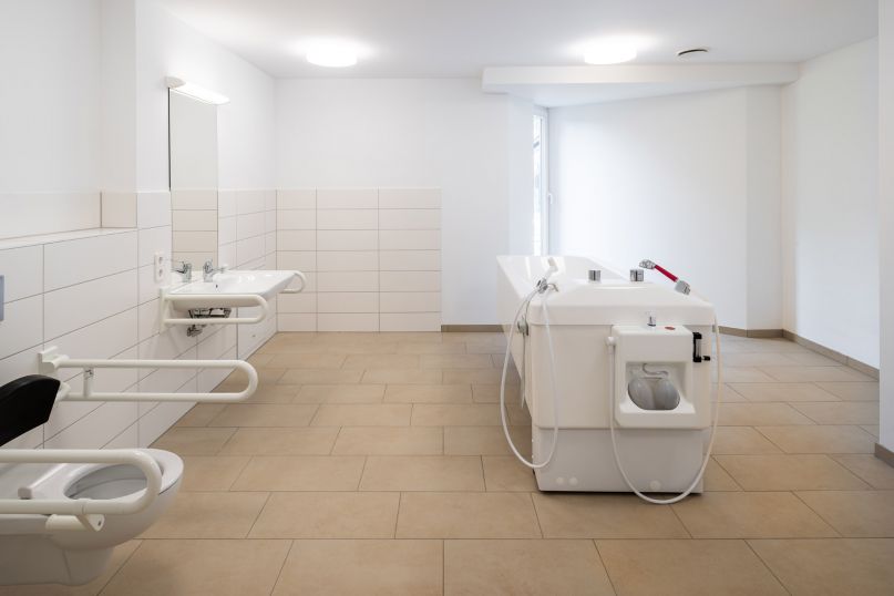 Über einen Aufzug erreichen die Bewohner den offenen Multifunktionsraum. Hier kann der Tag in liebevoller Gesellschaft und Betreuung genossen werden - egal ob am Fenster den Ausblick in die Natur genießend oder auf der Dachterrasse den Vögeln lauschend. Gemeinsam kochen, spielen oder basteln - der Möglichkeiten sind Viele. Und alles Dienende wie Rückzugsräume, Archiv und Büro sind optimal angegliedert. Und wer mag lässt sich im Pflegebad verwöhnen.