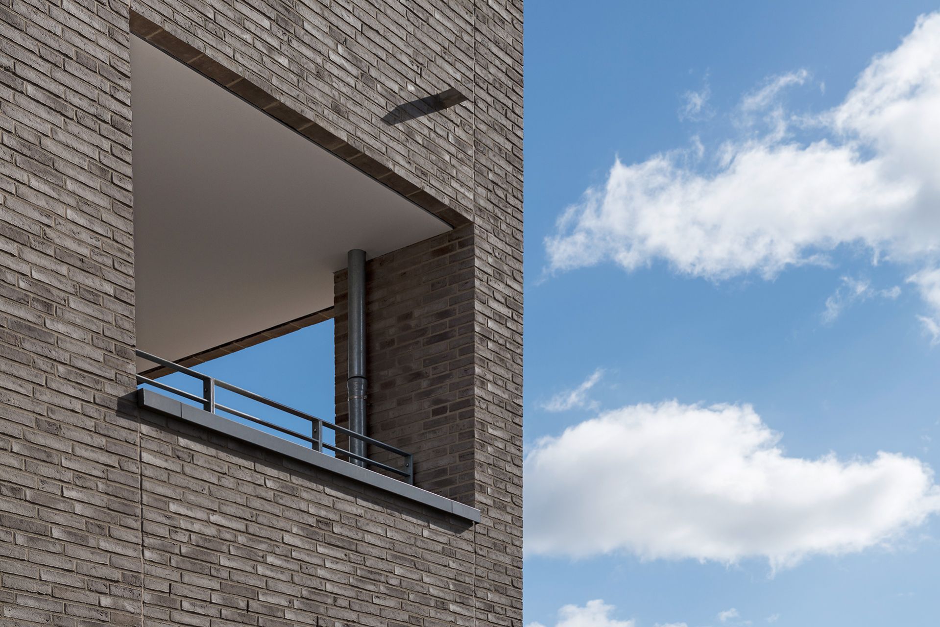 Massiven Brüstungsbänder unter Fenster und Loggien betonen dabei die Horizontale, binden die Gebäude optisch zusammen und erzeugen Ruhe, Klarheit und Stärke.