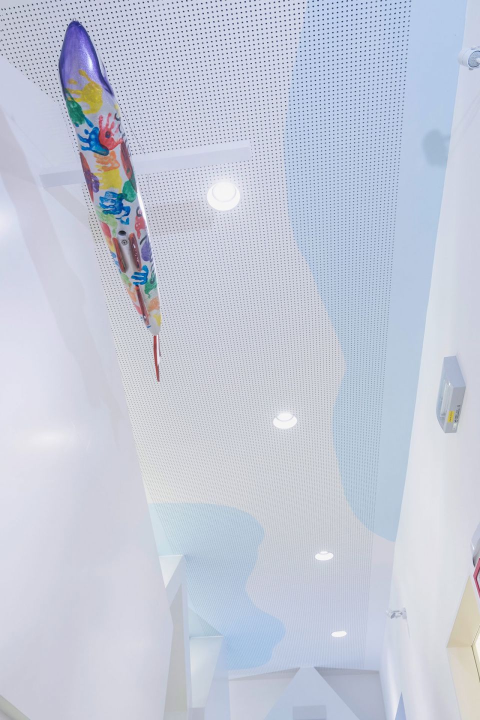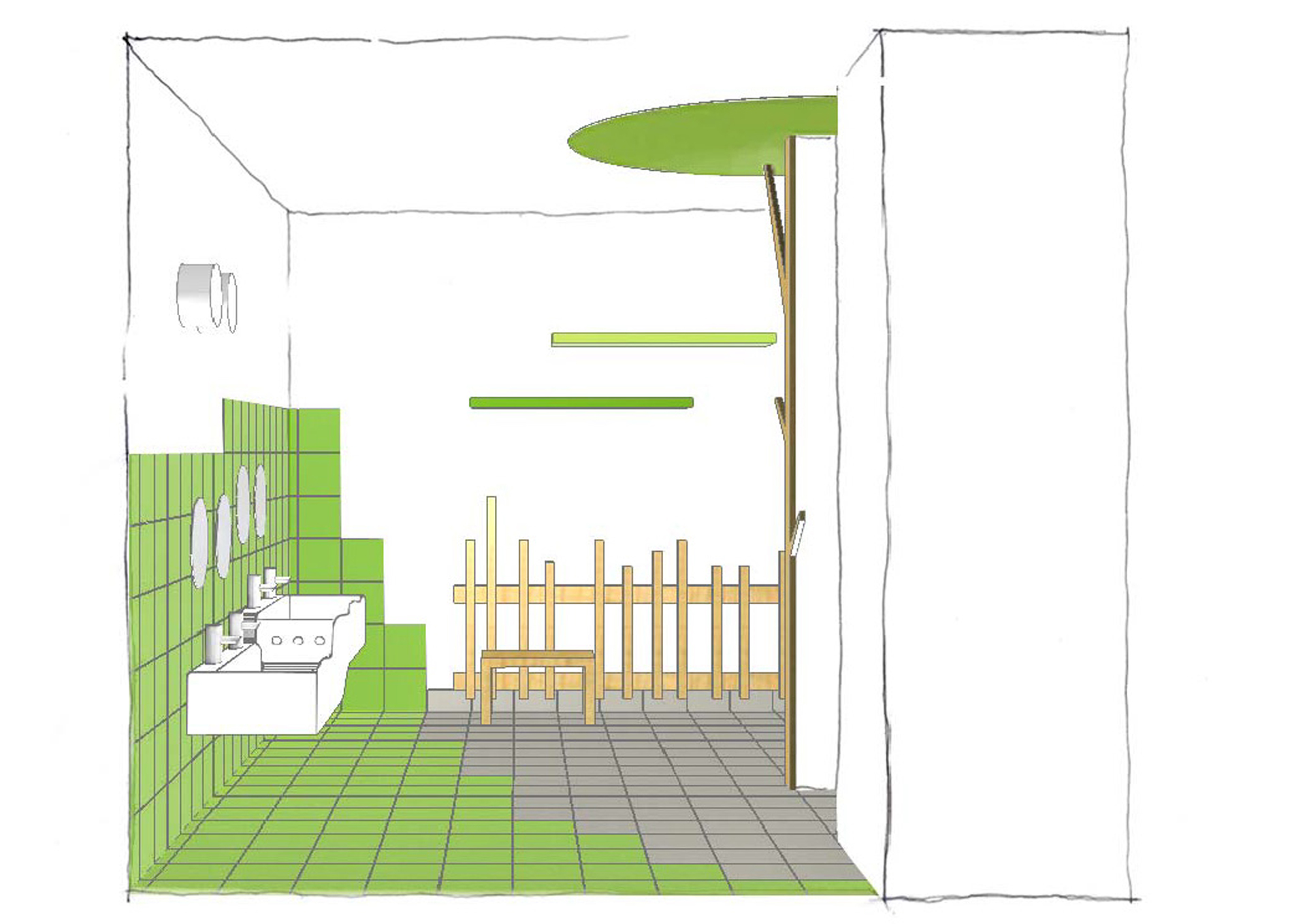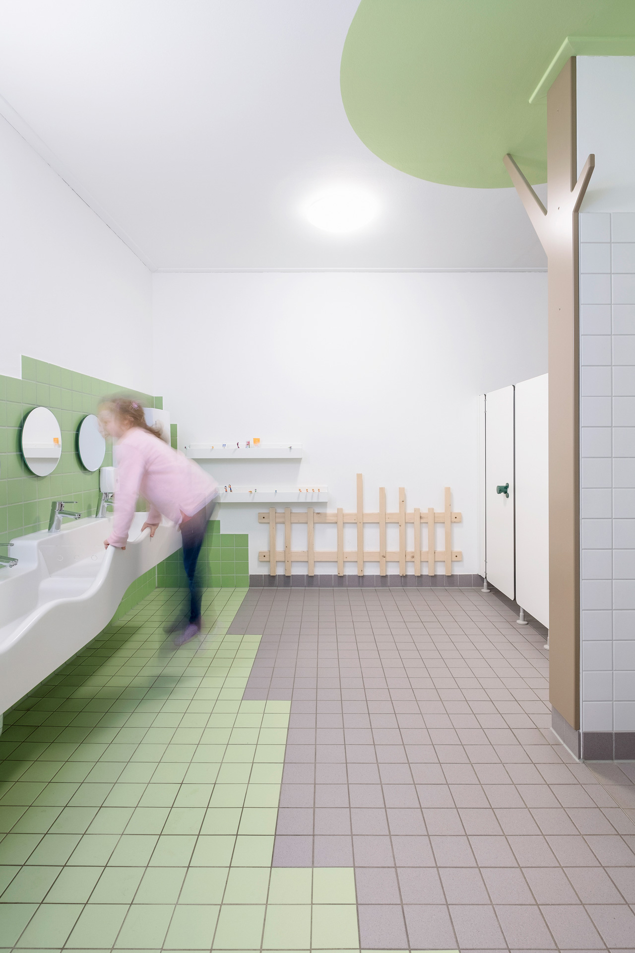 A clear color scheme and a schematic language of forms support the children's everyday orientation and identification. These are evident in floor surfaces, as well as in furniture and wardrobes.